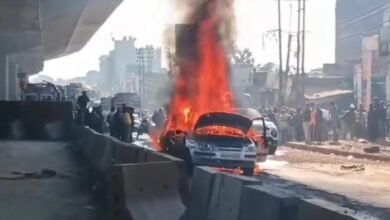 *Car gutted in massive fire on Ghagwal highway in Jammu’s Samba*