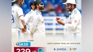 Port of Spain : Two wickets by Ravindra Jadeja and Mohammed Siraj helped India solidify their grip on the second…