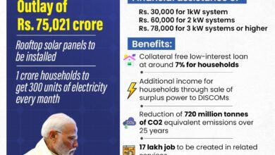 Cabinet approves PM-Surya Ghar: Muft Bijli Yojana for installing rooftop solar in One Crore households Households to get 300 units…